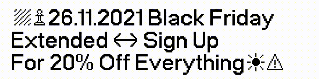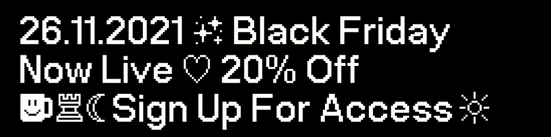 An 8-bit pixel design with a black and white theme to flirt with retro video game aesthetics. The assets used to tease the Black Friday date had pixelated product images to gamify the experience and hide which products would be on offer.